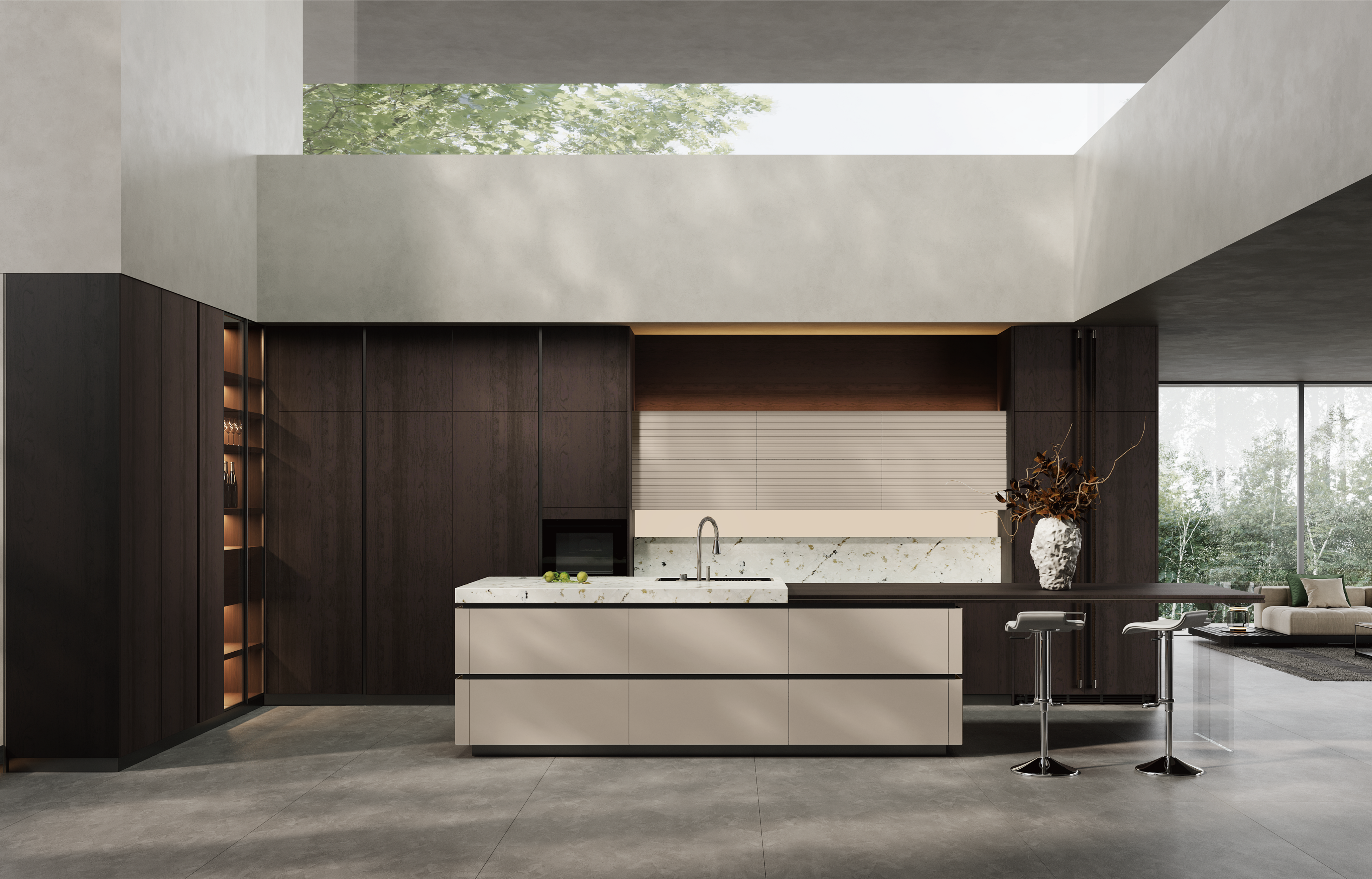 通过asiagame厨柜量体裁柜,定制出适合主厨下厨的烹饪区和洗涤区的舒适高度。